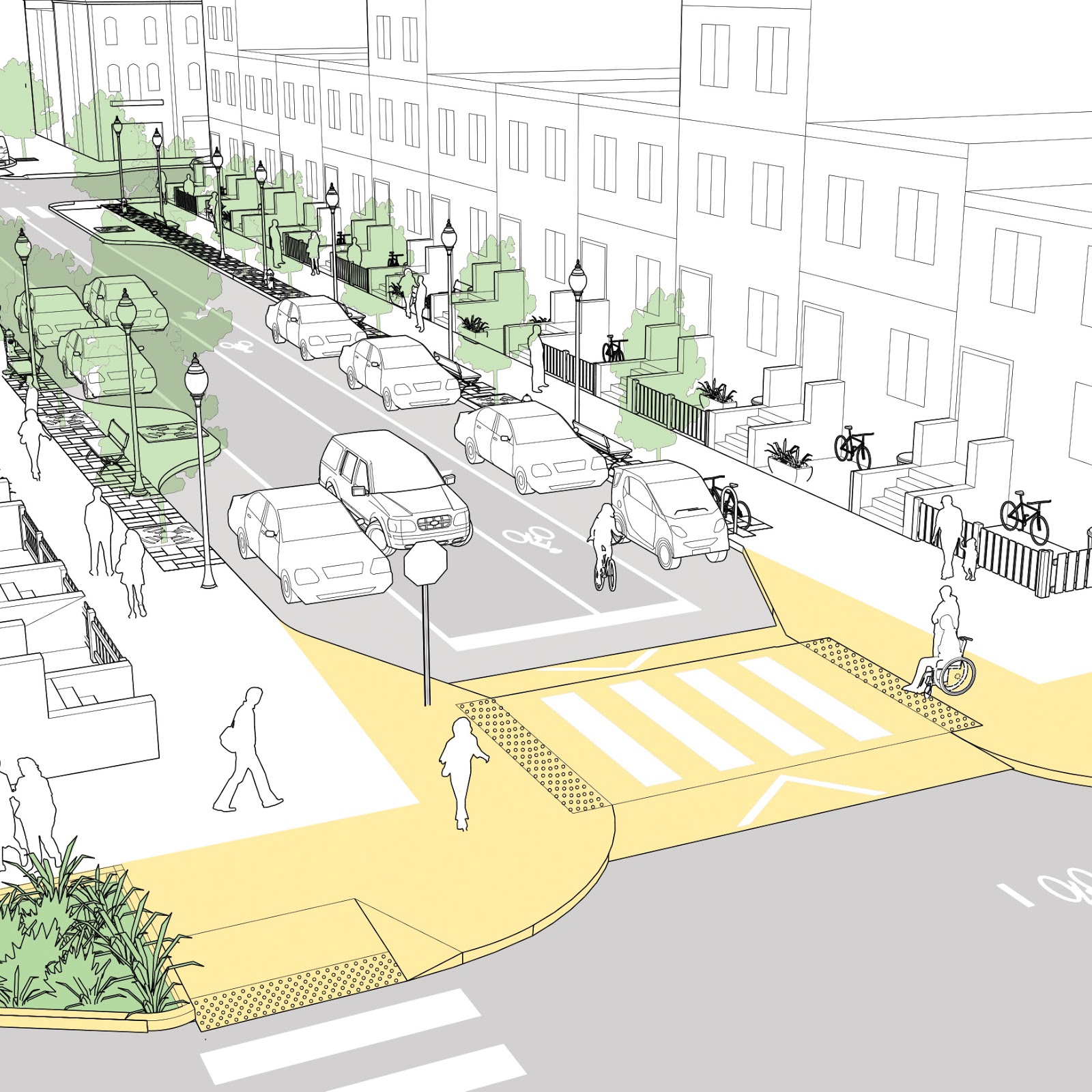 Bu infrastruktur elementi avtomobillərin yol ayrıcında saxlamasını əngəlləyir, çünki kimsə orada saxlasa bütün yol ayrıcını bağlamış olur. Bundan əlavə bu çıxıntı parklamma yerləri üçün xüsusi cib yaratmış olur.