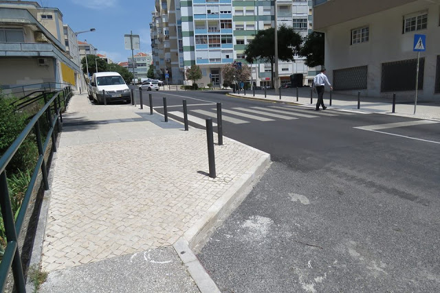 Pandusların düz qarşısında parklanmanı necə həll etmək olar? Çox rahat, sadəcə parklanmanın icazə verildiyi küçələrdə keçid yerlərində xüsusi çıxıntılar təşkil etmək lazımdır. Bax belə: