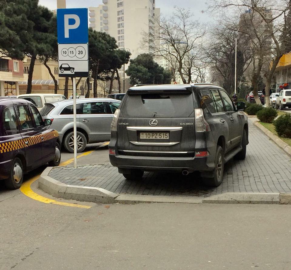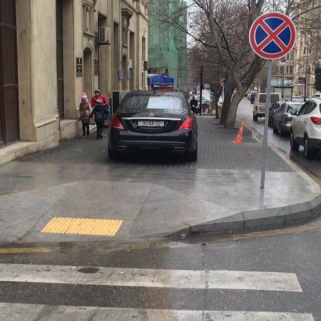 Eyni zamanda bəzi sürücülərimiz bu pandusların düz qarşısında park edərək piyadalın yolunu bağlayırlar. Məsələn belə: