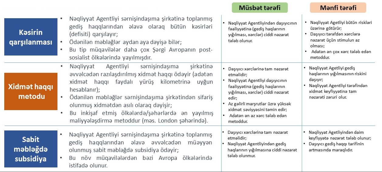 - Sərnişindaşıma şırkətləri ilə bağlanan müqavilə sistemi daha müasir və proqressiv «Xidmət müqaviləsi» sistemi ilə əvəzlənməlidir;